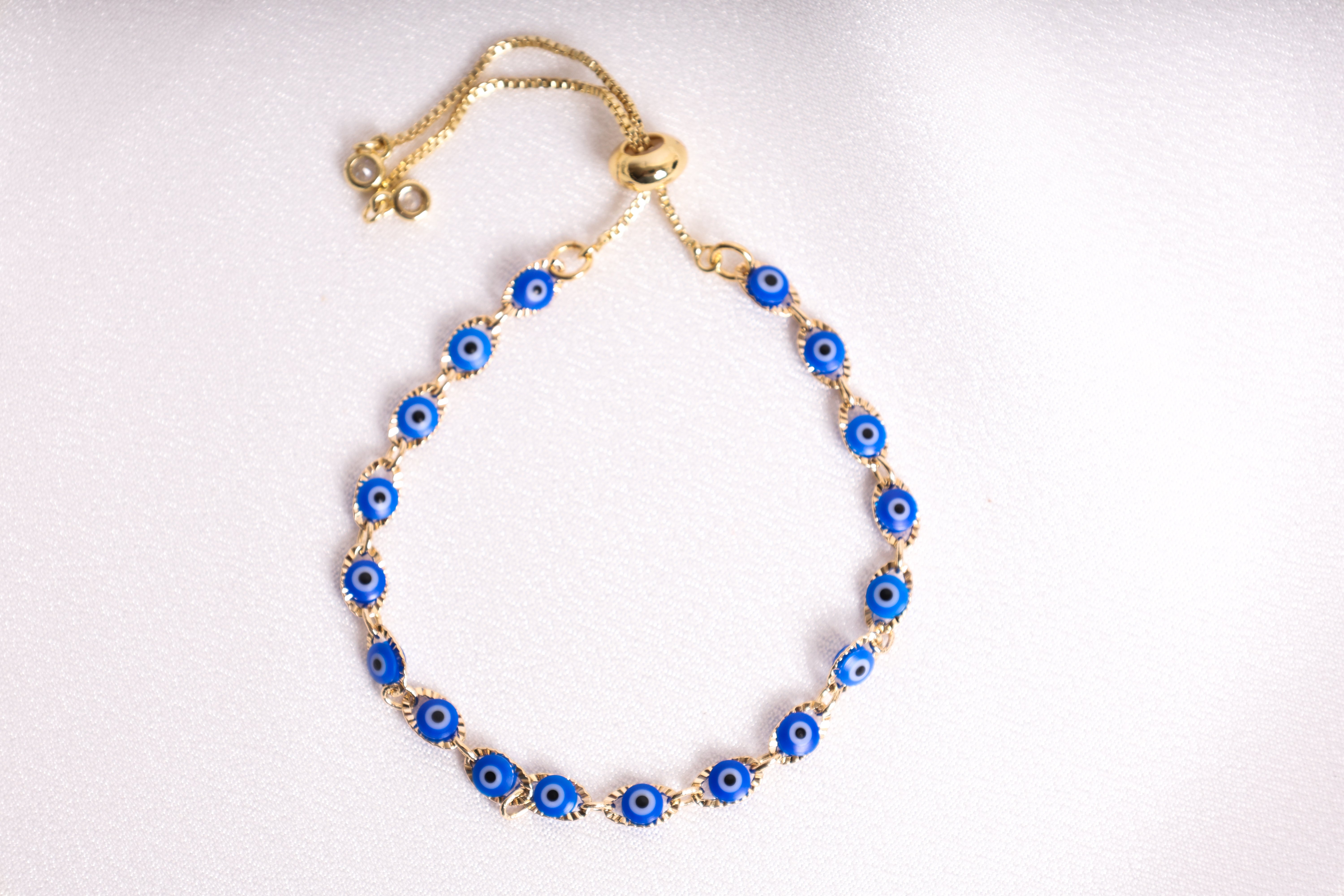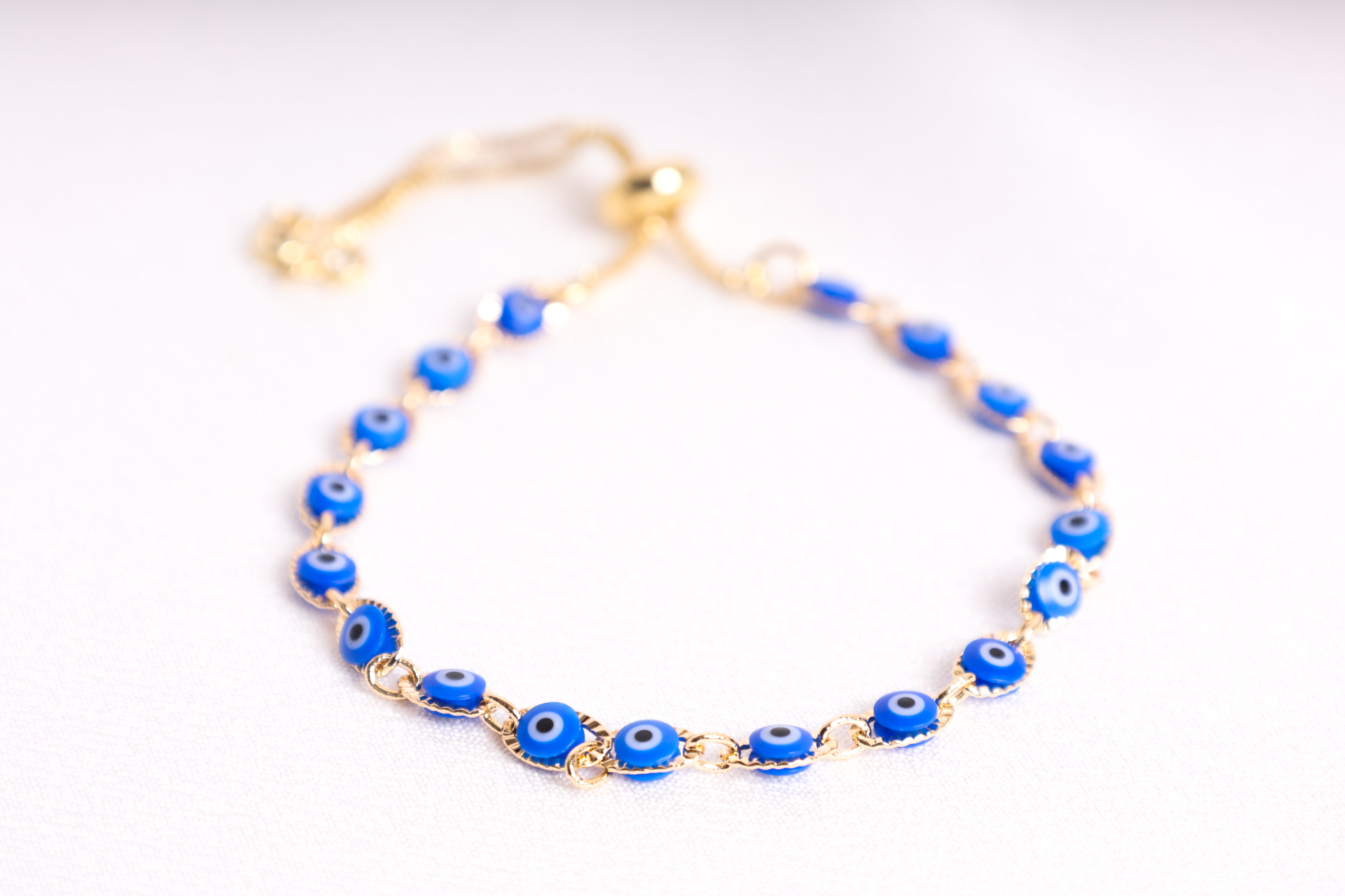 Adjustable Blue Evil Eye Gold-Filled Bracelet