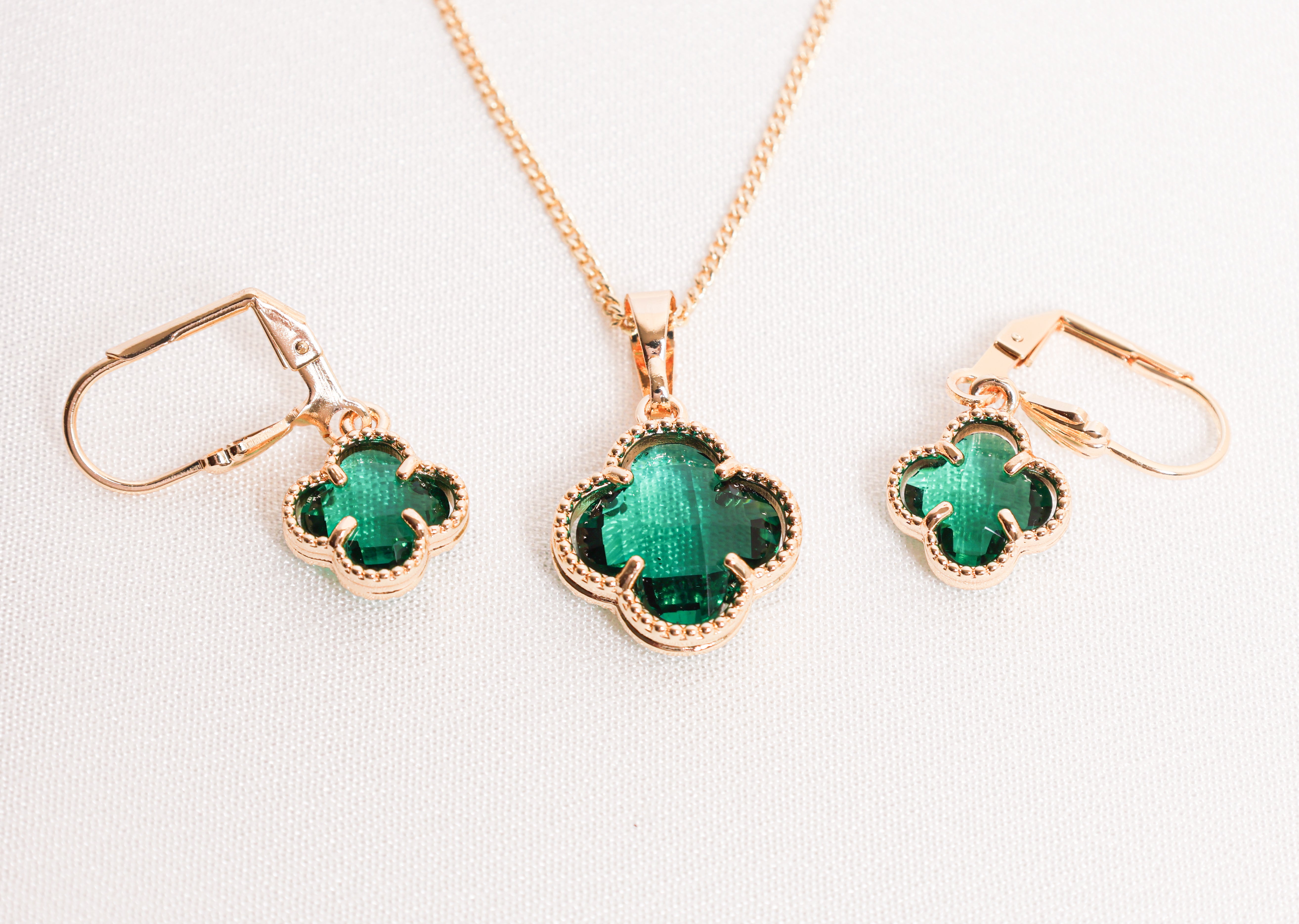 Elegant Clover Set – Green Crystal Accents