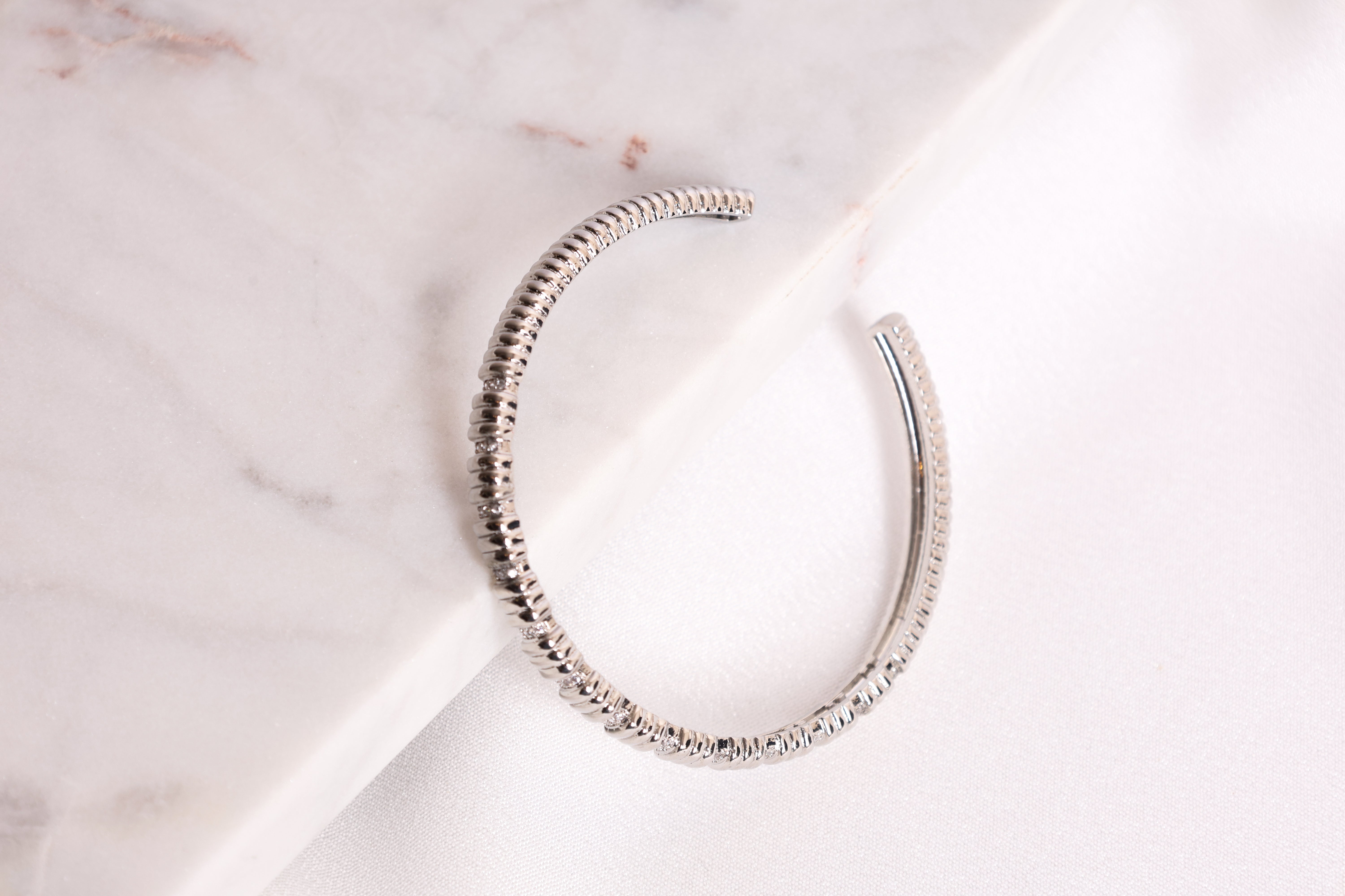 Elegant Rhodium Bangle with Dazzling White Details