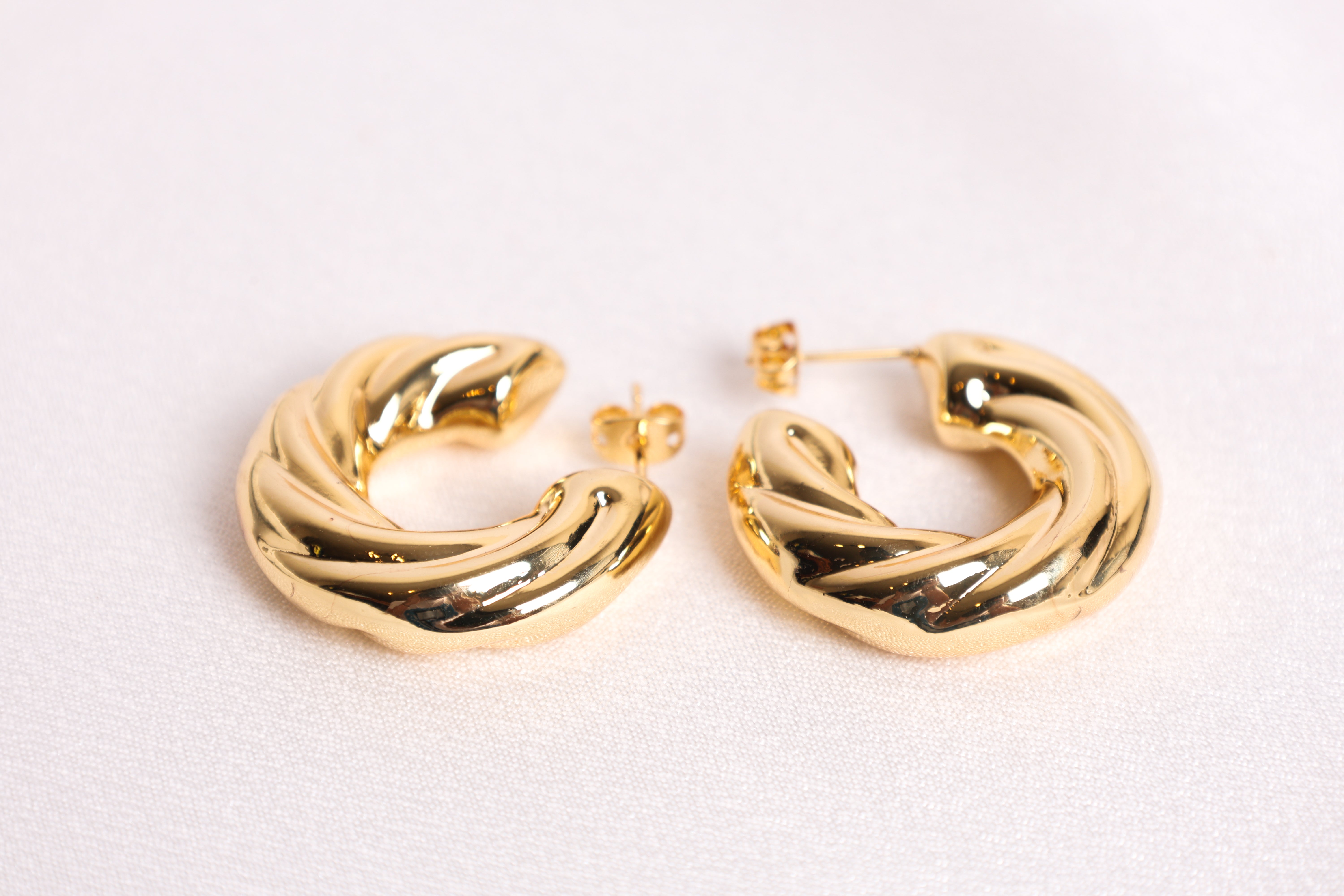Medium hoop earring crafted in gold-filled material, featuring a bold chunky and hollow design with a polished finish. Lightweight yet... Read more