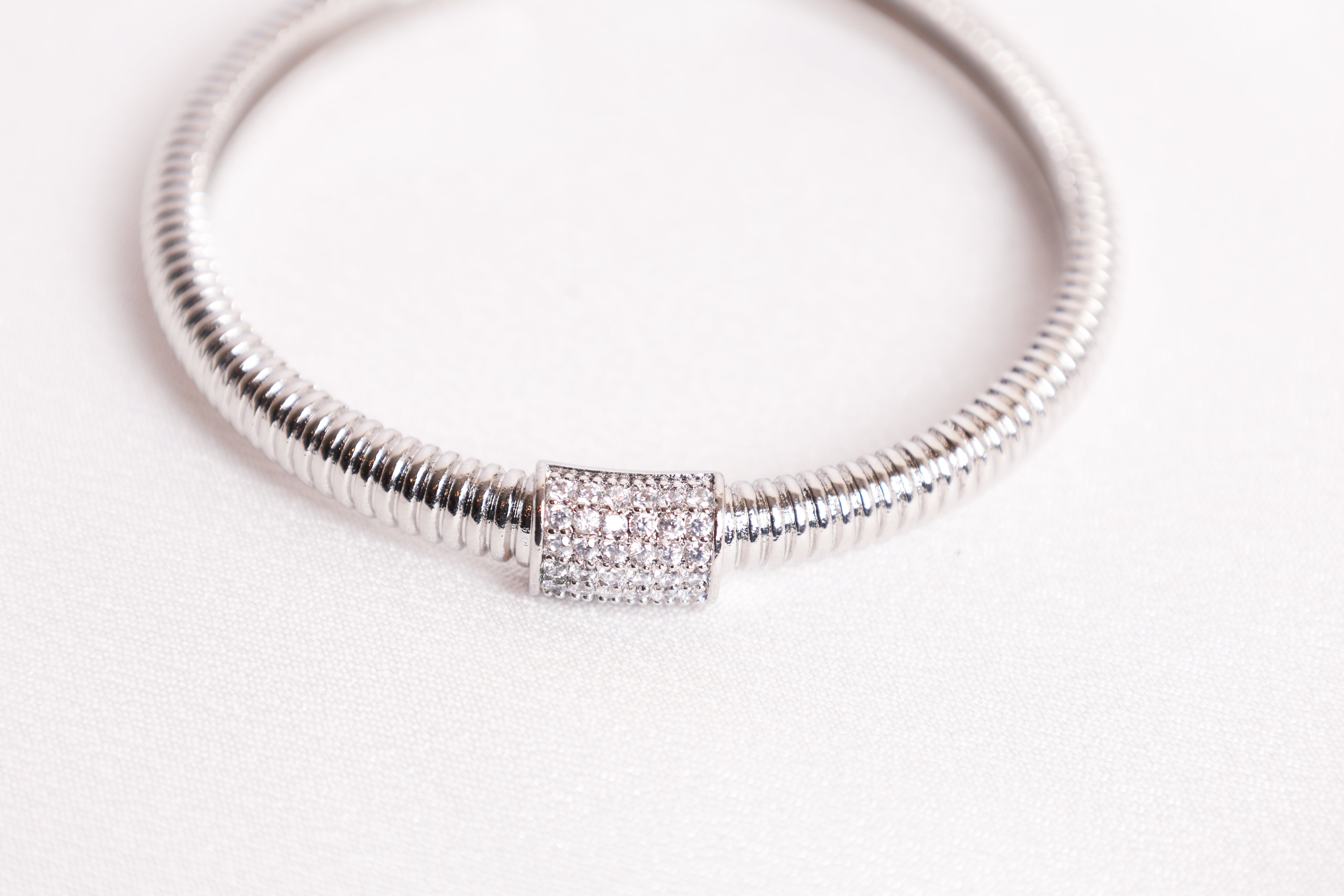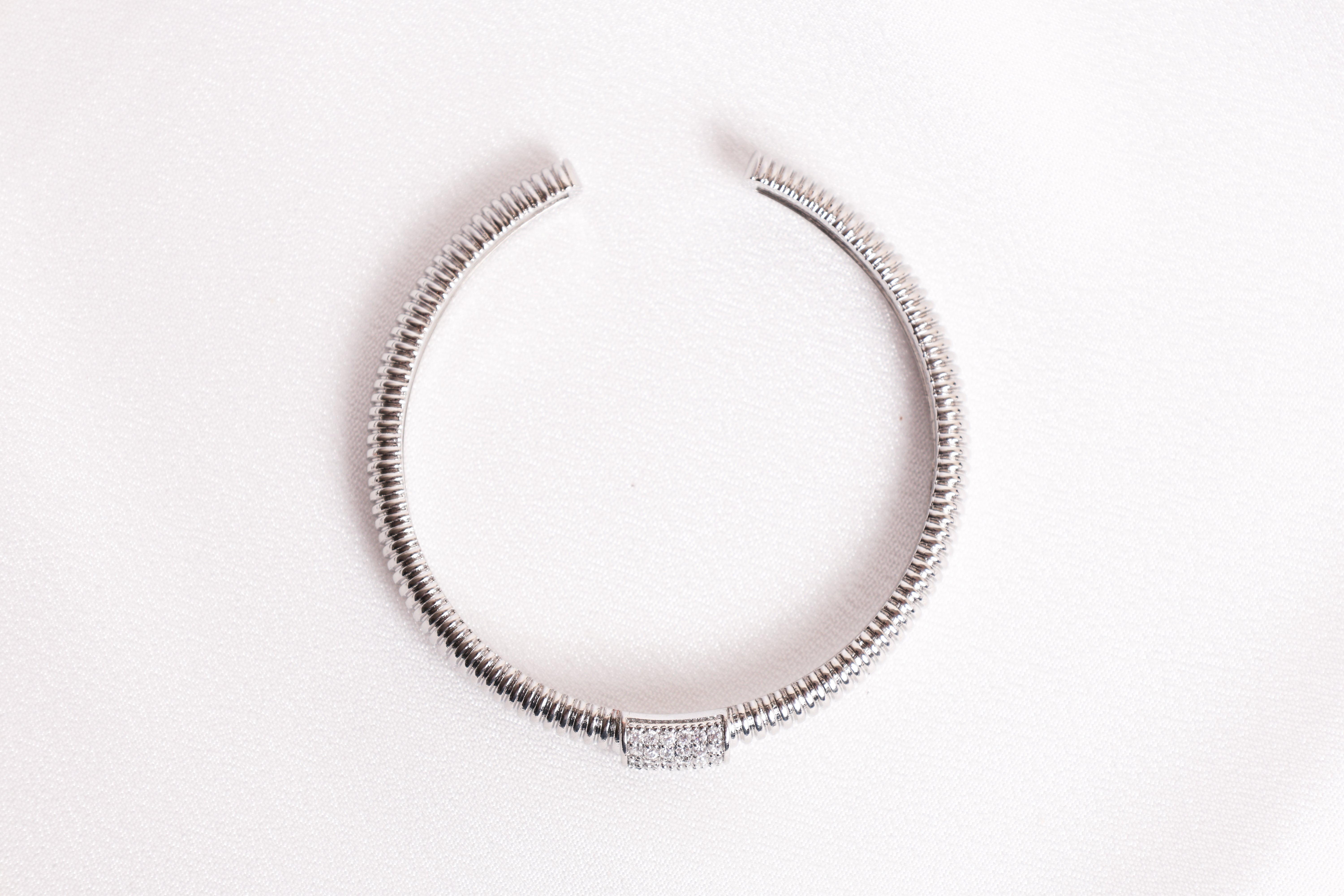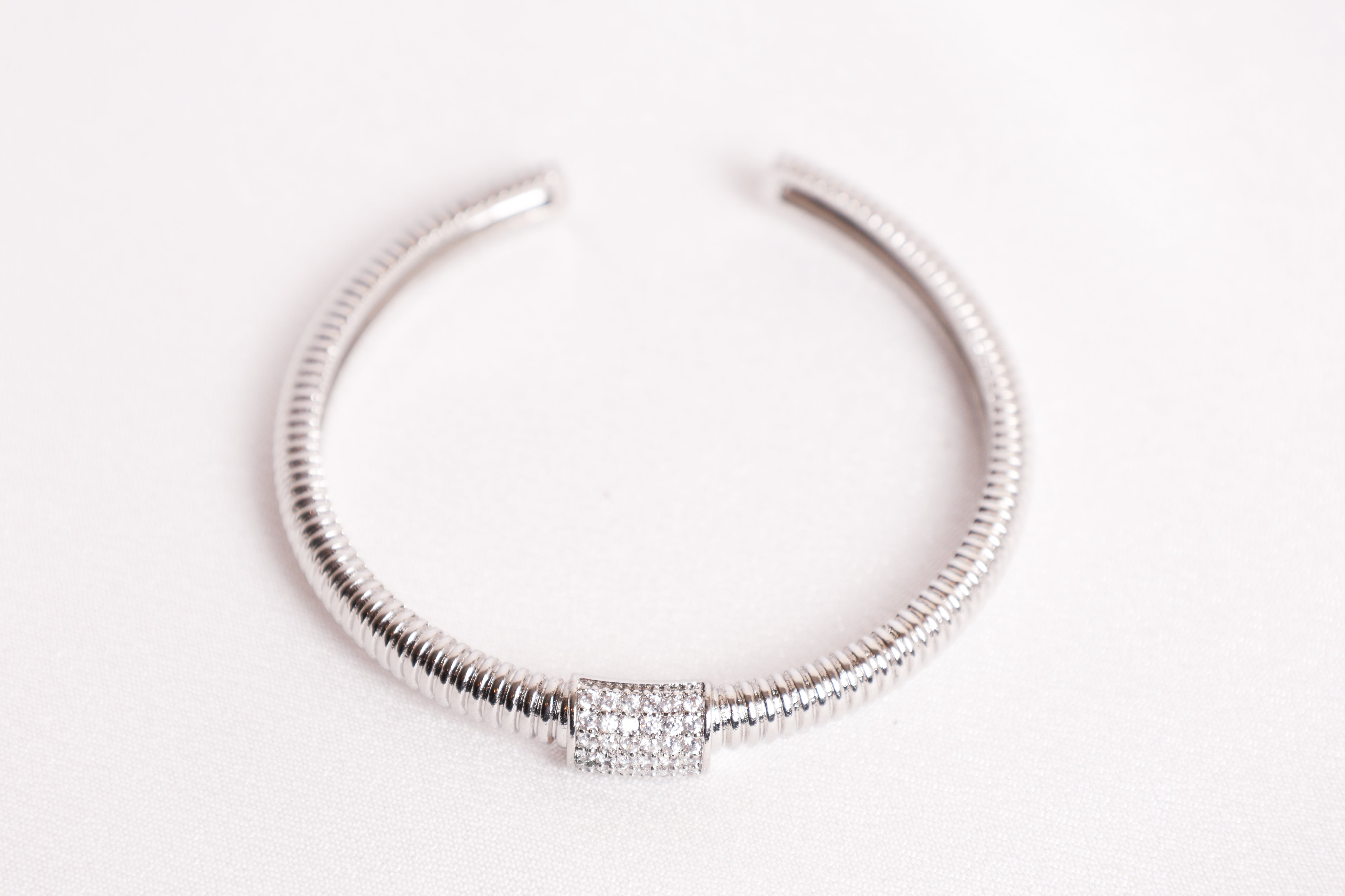 Shiny Rhodium Bangle with Statement Cubic Zirconia Accent