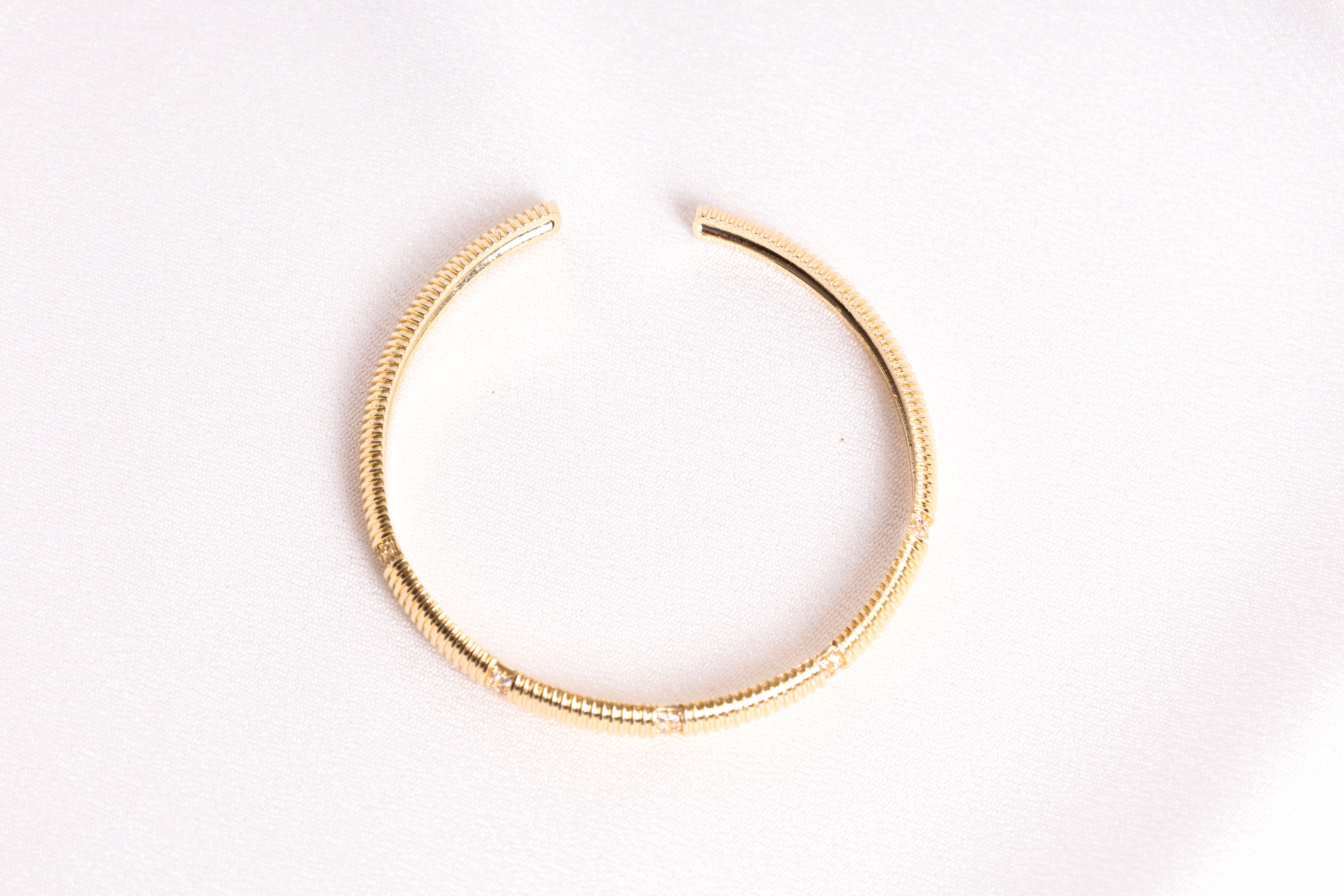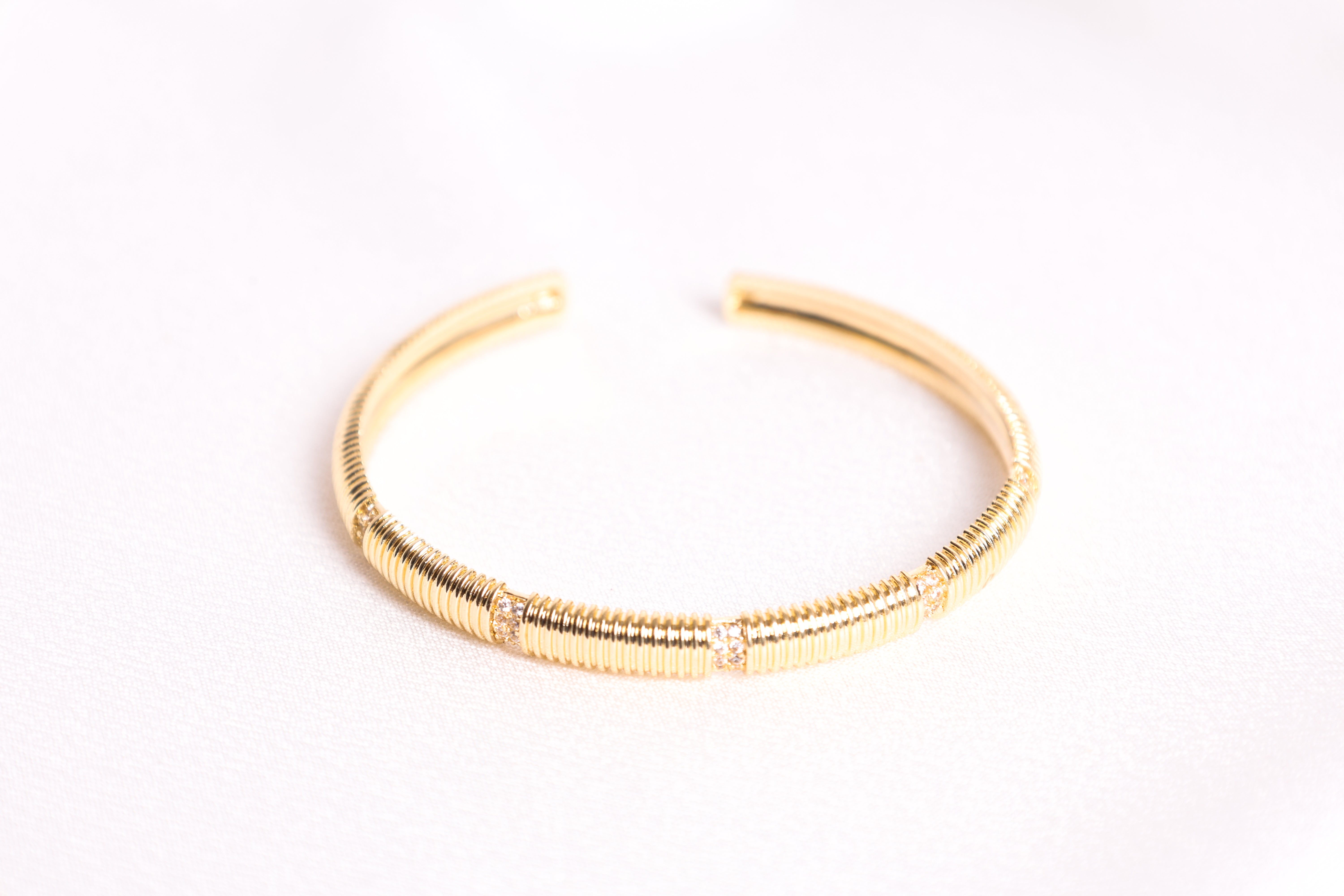 Single Gold Filled Bangle with White Micro Pavé Polished